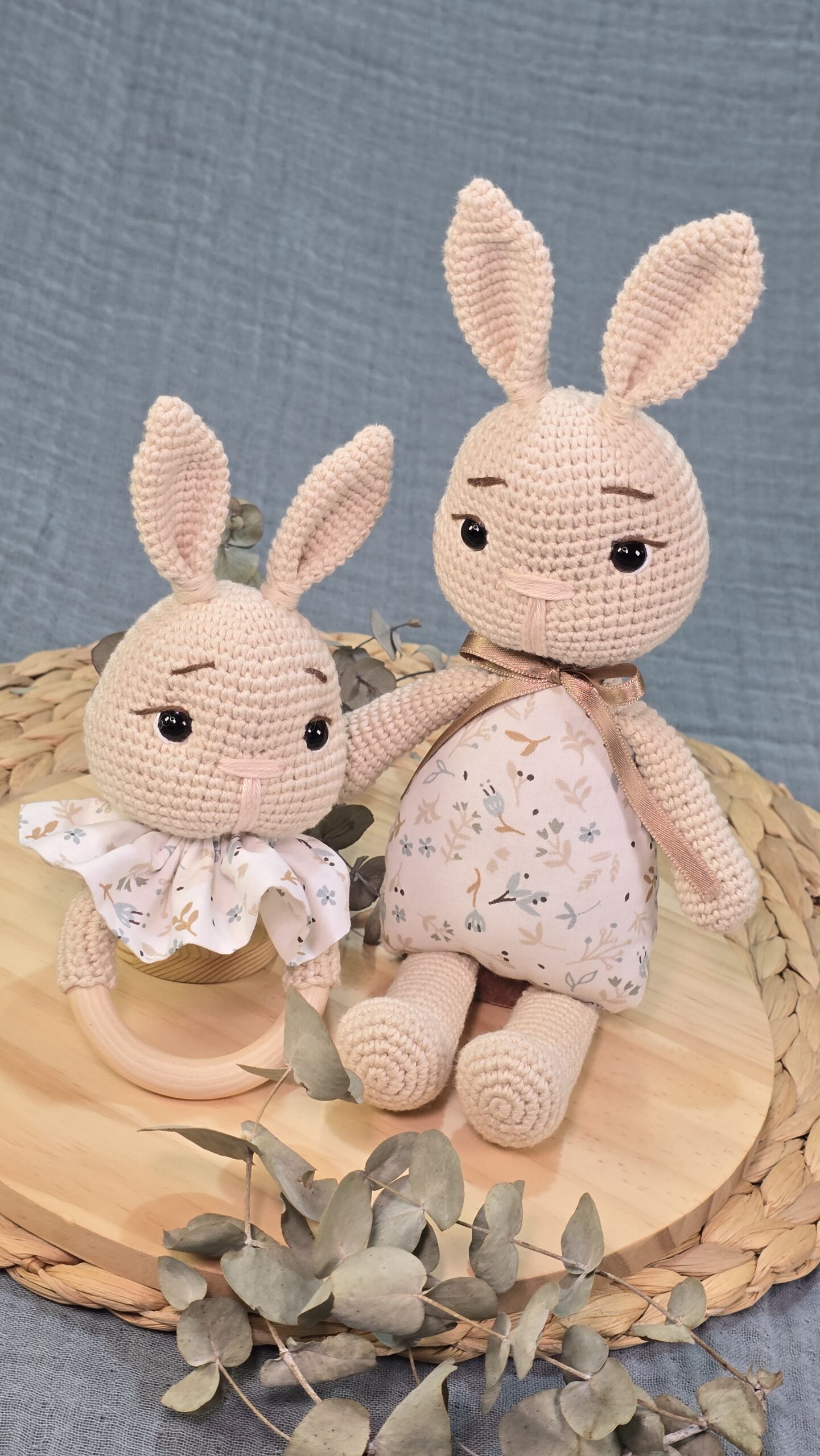 • Un amigurumi es un muñeco tejido a mano con la técnica japonesa del crochet. Estas piezas se elaboran con hilos suaves y seguros, y se caracterizan por sus formas tiernas y expresivas, pensadas para transmitir dulzura y acompañar a los más pequeños desde sus primeros días.