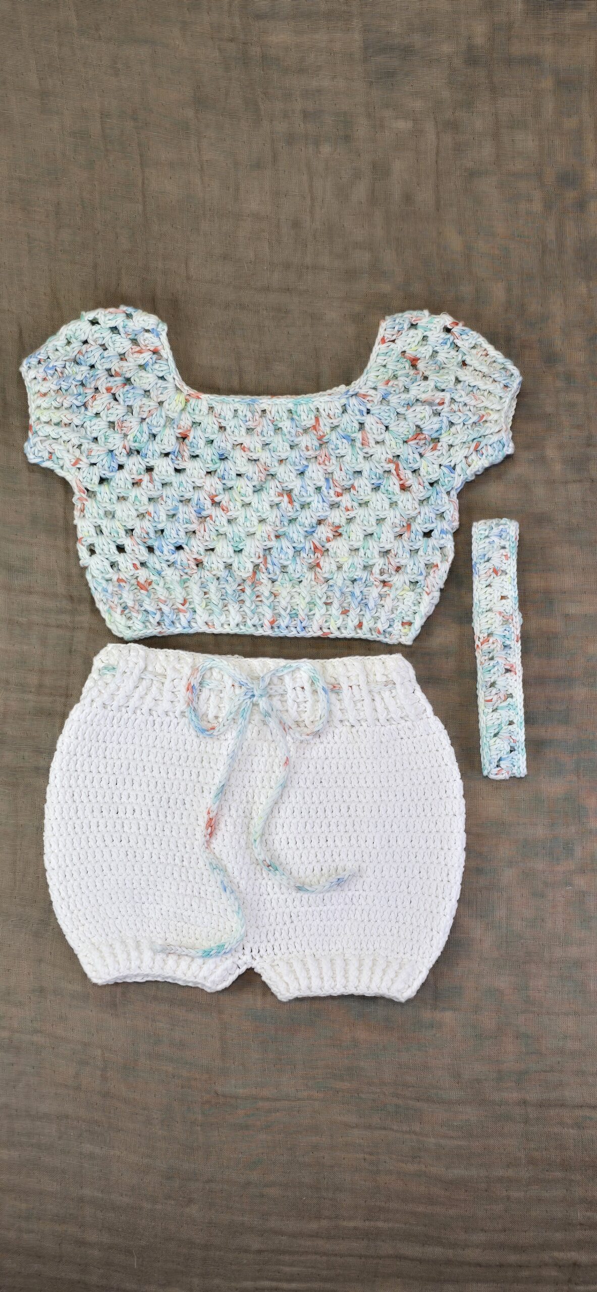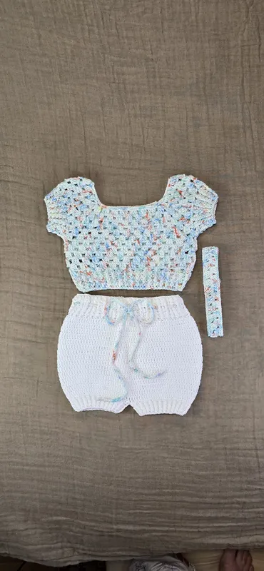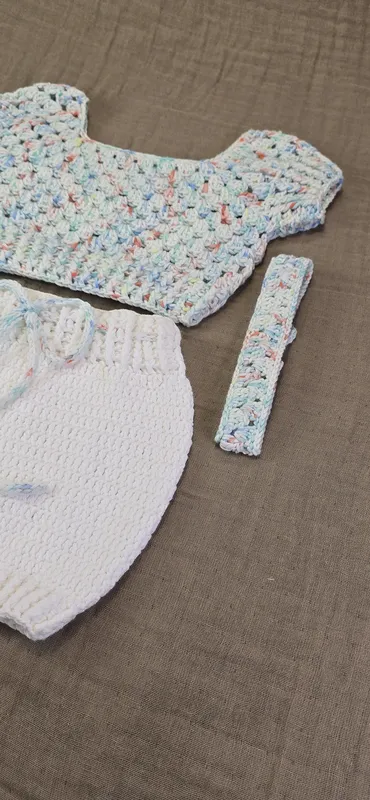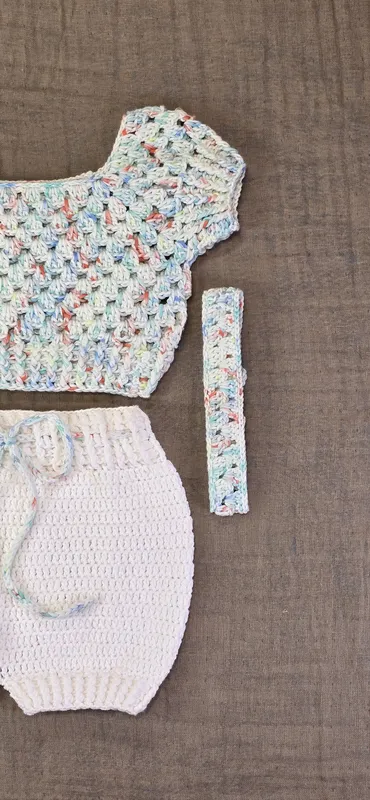 • Pantalón bombacho con puños en las piernas y cinturilla en punto elastico y ajustable con cordon de crochet para el lazo.