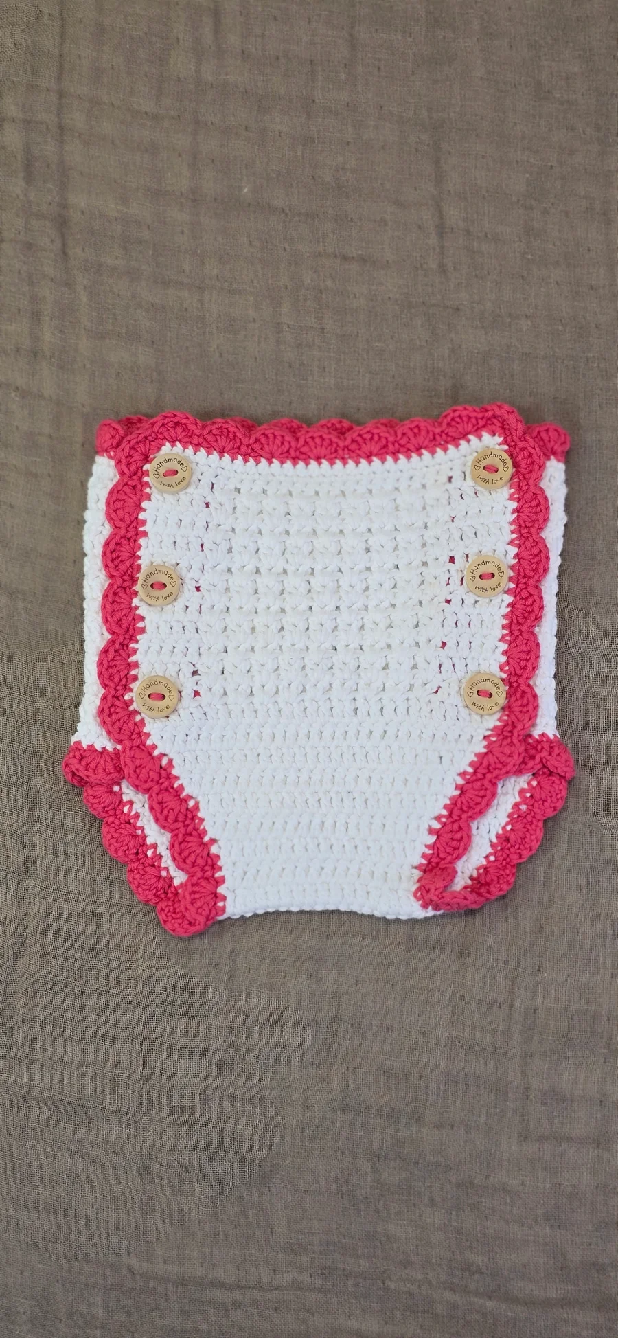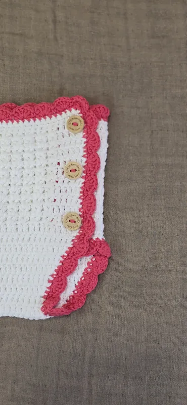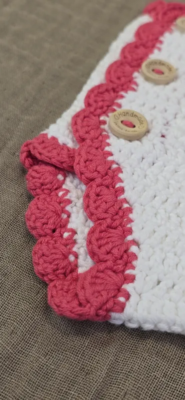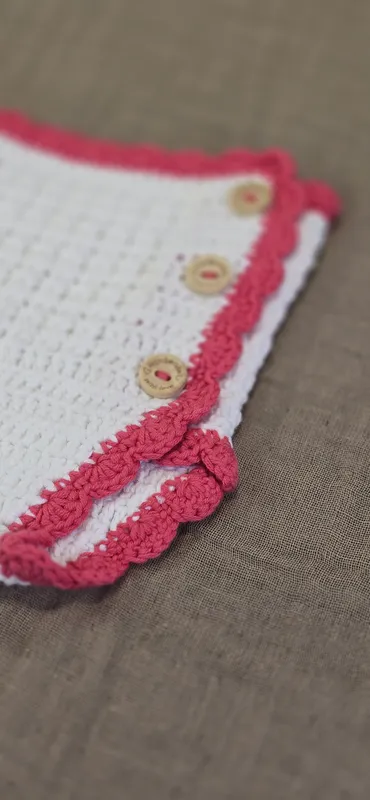 Cubre pañal en crochet, con detalles en punto V y ondas. Hecho 100% a mano.
