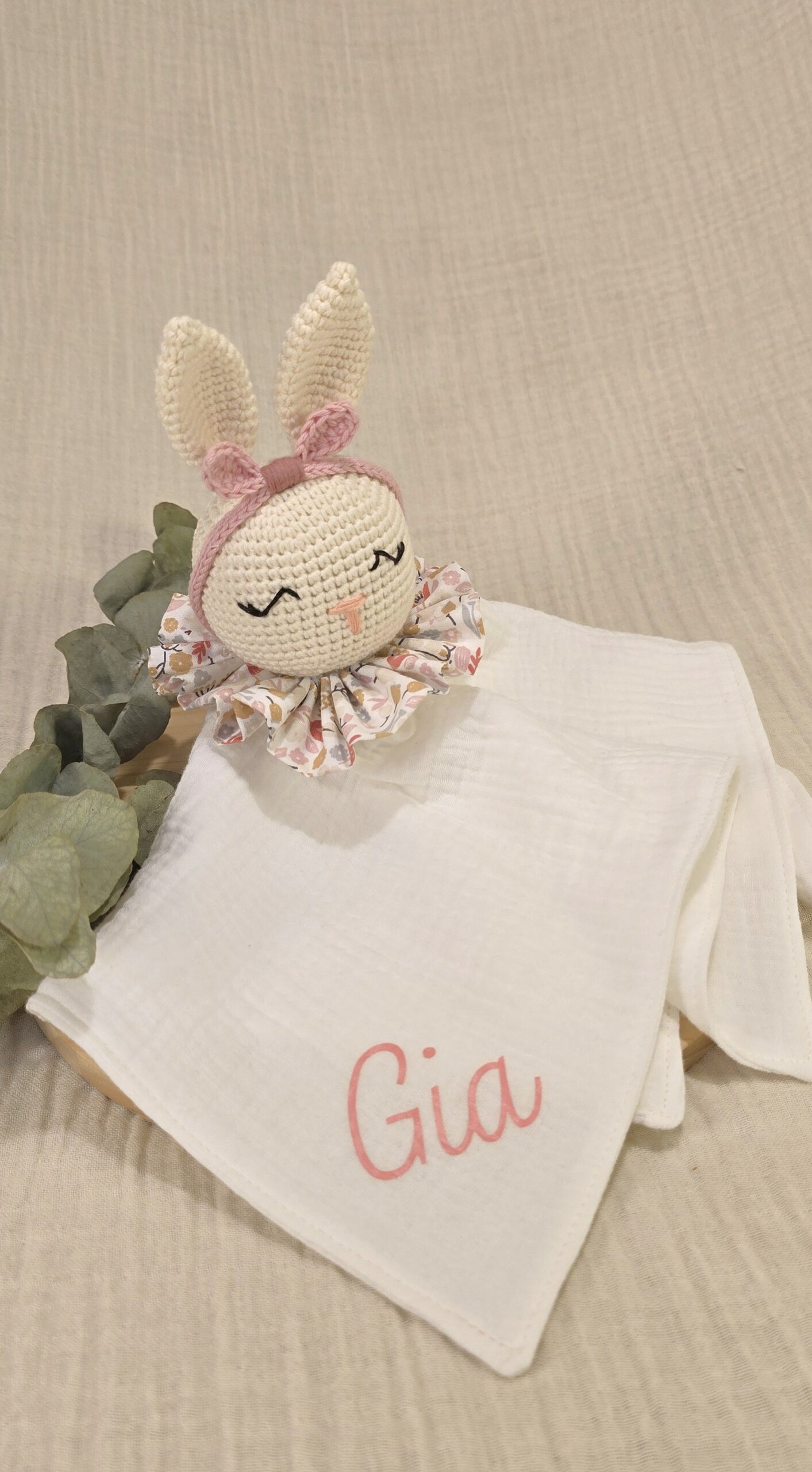 Hecho a mano con cabeza de animalitos en crochet y muselina.